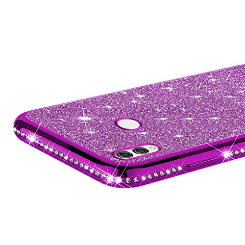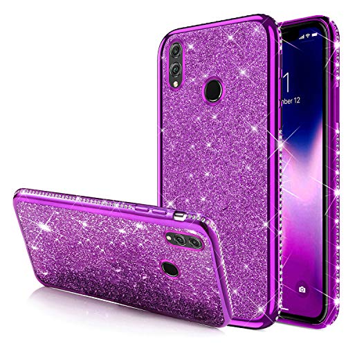 Cover Huawei P Smart 2019,Custodia Huawei P Smart 2019,Ultra Sottile Bling Scintillio Lucido Glitter Diamanti Strass Placcante Morbido Silicone TPU Gel Custodia Cover per Huawei P Smart 2019,Viola