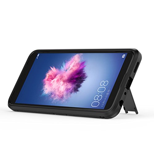 Cover Huawei P Smart, EasyBee Kickstand Series 2 in 1 Ibrido Rugged Duro PC+Morbido Gomma Silicone [Rugged Armor] [Shock-Absorption] Dual Layer Hybrid custodia per Huawei P Smart/Enjoy 7s, Nero