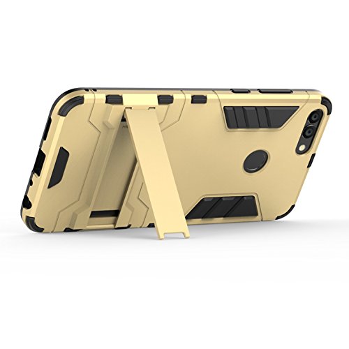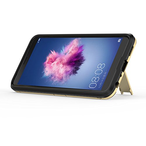 Cover Huawei P Smart, LXHGrowH Custodia Morbido TPU 360° Full Body Protettiva Bumper, Rigida Plastica Armor Antiurto Protettiva Cover per Huawei P Smart, 2in1 Dual Layer Protezione Ibrida Case con Supporto e Asportabile Custodia per Huawei P Smart, Oro