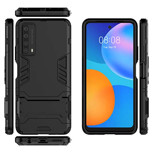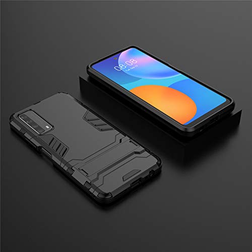 Cover per Huawei P Smart 2021 / Huawei Y7a (6,67 Pollici) 2 in 1 Hybrid Dual Layer Completamente Shock Resistente Armour con Cavalletto Funzione Custodia (Nero)