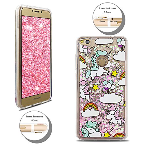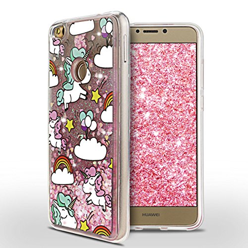 Cover Huawei P8 Lite 2017 Spiritsun P8 lite Custodia TPU Moda Elegante Case Cover Morbido Silicone Case Trasparente Quicksand Glitter Cristallo 3D Floating Bling Strass Protezione Bumper Funzione Shell Per Huawei P8 Lite 2017 Phone Custodia - Rosa Chiaro