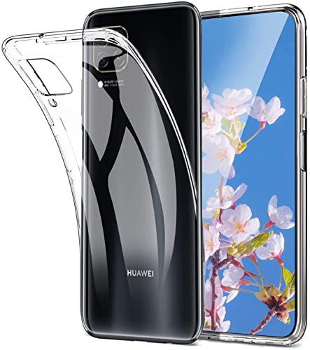 Cover per Huawei P 40 Lite + vetro temperato, ultra sottile, in silicone TPU trasparente, morbida aderenza perfetta/anti-graffio, colore: Trasparente