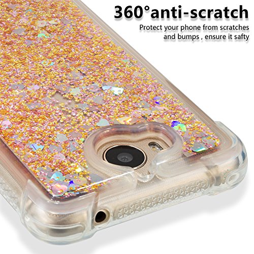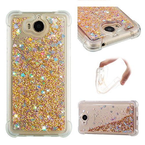 Cover Huawei Nova Young Custodia, Moevn 3D Glitter Liquido Trasparente Sabbie Mobili Morbida TPU Silicone Sparkle Quicksand Antiurto Protezione Case Huawei Y6 2017 /Y5 2017 /Y5 III Smartphone (Oro)