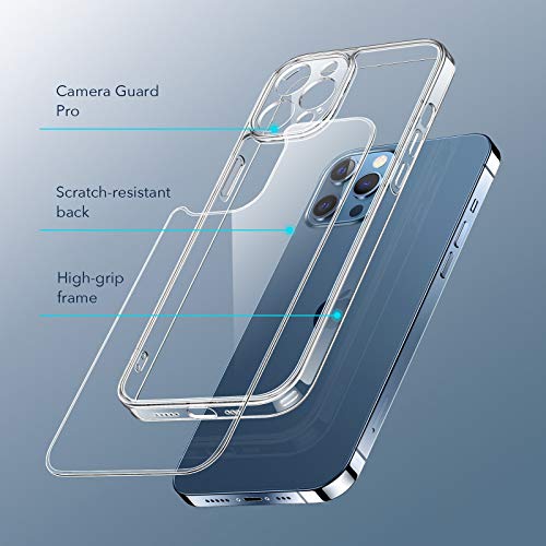 ESR Cover Ibrida con Camera Guard PRO Compatibile con iPhone 12 PRO 6.1”, Retro Resistente e Struttura Morbida, Anti Urto, Serie Sidekick, Trasparente