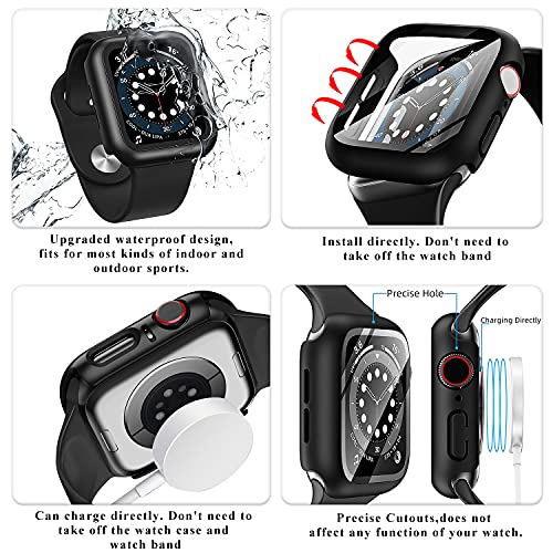 Cover Impermeabile per Apple Watch 44mm Series 6/SE/5/4 con Vetro Temperato, Qianyou PC Custodia HD Clear Pellicola Protettiva Protezione Totale Ultra Sottile Bumper Case Copri per iWatch 44mm (Nero)