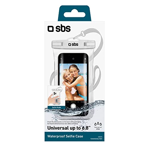 SBS Cover impermeabile IPX8 per cellulari Android e iPhone fino a 6,8" con finestra touch, impugnatura per selfie, laccio da collo, chiusura ermetica water resistant per brevi immesioni, bianca
