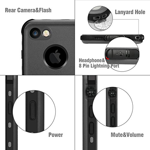 Cover Impermeabile iPhone 7, Merit IP68 Protezione Standard Custodia Impermeabiel, Untiurto, a Prova di Acqua, Neve e Sporco per iPhone 7(nero)