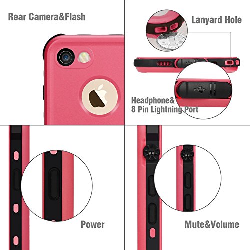 Cover Impermeabile iPhone 7, Merit IP68 Protezione Standard Custodia Impermeabiel, Untiurto, a Prova di Acqua, Neve e Sporco per iPhone 7(pink)