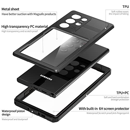Cover impermeabile per Samsung Galaxy S23/S23 Plus/S23 Ultra, 360 Gradi Totale Militare Rugged Armor Anticaduta/Anti Urto Custodia Military Subacquea Waterproof Antipolvere,Black,S23 Ultra
