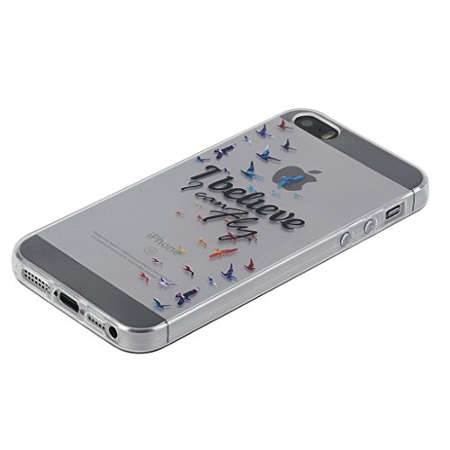 Cover iPhone 5/5S/SE Silingsan Cover in Silicone TPU per iPhone 5/5S/SE Custodia Trasparente Soft Clear Case Bumper Cover Protettiva Custodia Morbida Flessibile Cover Sottile Leggero Cassa Antigraffio Antiurto con Design Creativo - Uccelli che Volano