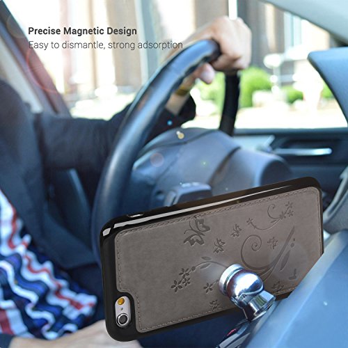 Cover iPhone 6/iPhone 6s Custodia Pelle Premium PU e Silicone TPU Case [2 in 1, Separato] - Flip Cover Morbido Leather, Goffratura Farfalla e Fiore, Chiusura Magnetica, Supporto Stand - Grigio