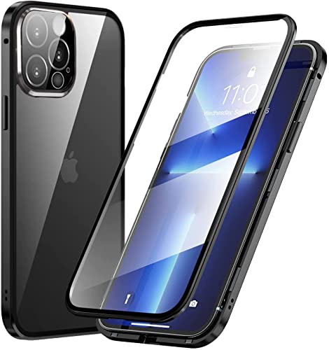 Cover iPhone 12 Pro Max 5G Adsorbimento Magnetico Custodia,Paraurti in Metallo 360 Gradi antiurto Protezione,Vetro temperato trasparente ultrasottile+Protezione dell'obiettivo della fotocamera,Nero