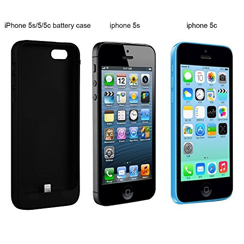Cover per iPhone con batteria supplementare, Three-AM, ultra sottile e portatile, per allungare la batteria del proprio iPhone 5 / 5S / 5C / 5SE, colore nero, black, iPhone 5