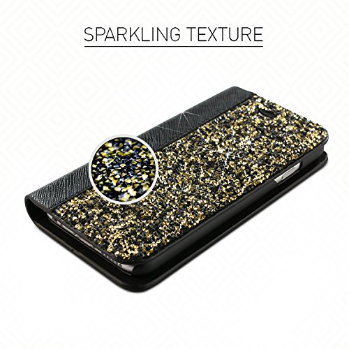 Cover iPhone 7 Flip, BlingZ.® 3D Custodia Glitter per iPhone 7 Flip in pelle con elementi di cristallo Swarovski Bling Bling - Midnight Black