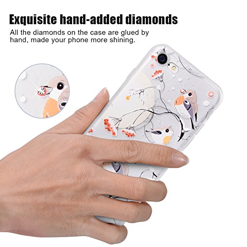 Cover iPhone 6 Plus Brillantini,Vandot Cases Glitter iPhone 6S Plus,3D Romantic Winter Cherry Plum Cover iPhone 6 Plus / 6s Plus 5.5" Silicone Morbido 3D Bling Strass Opaco dipinto Mughetto simpatico cartone animato, Uccello Birdie sollievo