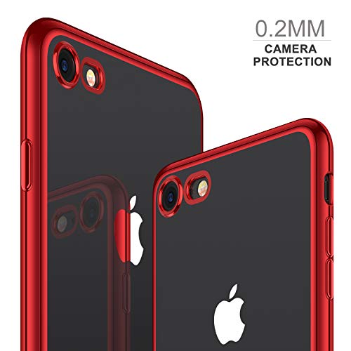 Cover iPhone 7, CASEKOO Silicone Ultra Slim Molle Trasparente con Disegni Anti-Graffio protettiva Aria-Cuscino Assorbimento Urti Bumper Caso Tecnologia di Assorbimento per Apple iPhone 7 (4.7")- Rosso