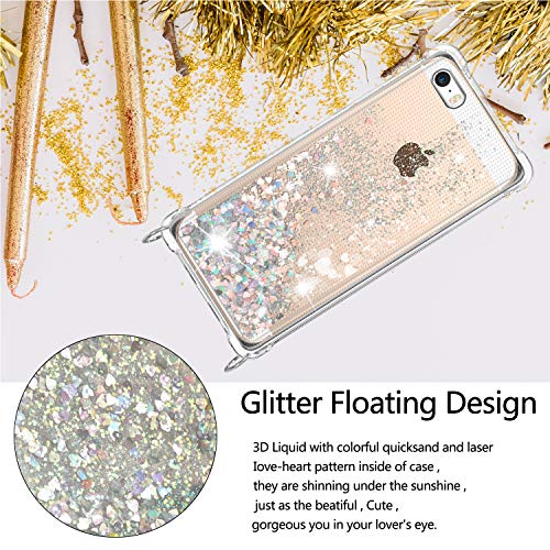 TUUT Cover per iPhone 5/5s con Cordino, Glitter Bling Liquido Custodia Sparkly TPU Silicone Protettivo Morbido Brillantini Quicksand Cellulare Cover con Cordoncino Case -Oro Rosa