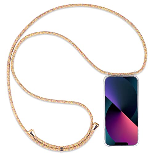 Cover iPhone 13 Pro con Cordino,Protezione Resistente e Design Elegante,Cinghia Rimovibile Regolabile -custodia protettiva in silicone trasparente,Rainbow