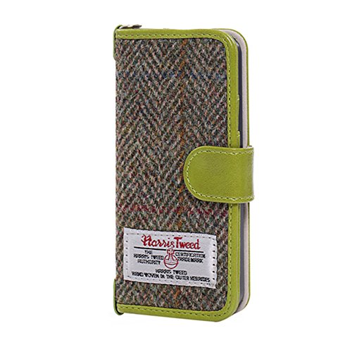Cover iPhone 7 Plus, Cover iPhone 8 Plus Cuoio [ Harris Tweed ] Pelle Custodie a libro con porta carte di credito e banconote, Portafoglio Cover con chiusa Magnetica per iPhone 7/8 Plus (Grün)
