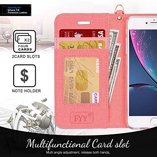 FYY Cover iPhone 8,Custodia iPhone 7,Cover iPhone 7,[RFID Blocco Portafoglio] Flip Custodia Portafoglio in PU,[Funzione Staffa]con Slot per Schede e Chiusura Magnetica per iPhone 7/8-Tela da Rosa