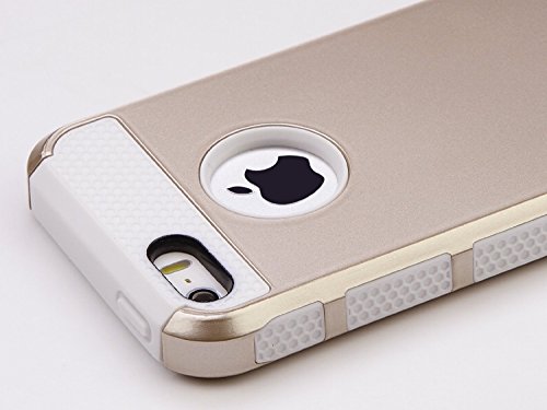 Cover per iPhone 5S, iPhone SE Cover, ULAK Custodia iPhone 5 Cover con design slim con doppio strato di protezione anti collisioni in silicone Custodia per Apple iPhone 5 / iPhone 5S / iPhone SE, Oro + Bianco