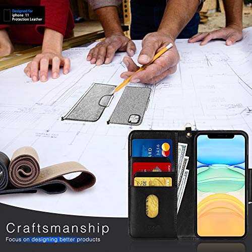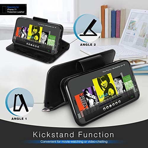FYY Cover iPhone 11, Custodia iPhone 11 6.1",[Funzione di Staffa] Flip Custodia Portafoglio Libro in Pelle PU Premium con Slot per Schede per iPhone 11 6.1" 2019-Nero