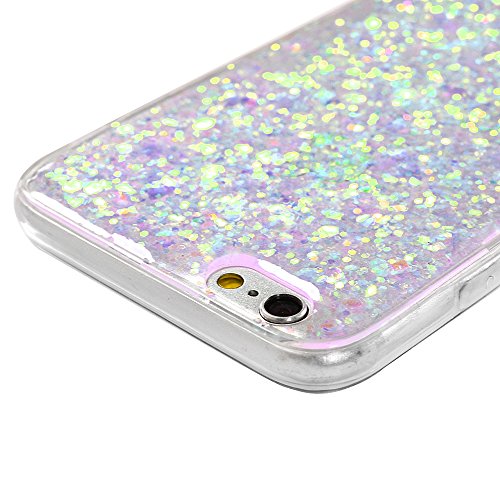 2x Cover iPhone 6S, Custodia con Glitter Brillantini Silicone Ultra Sottile Antiscivolo Antiurto Slim Bumper Case per iPhone 6 - Blu + Viola Chiaro
