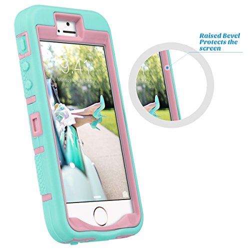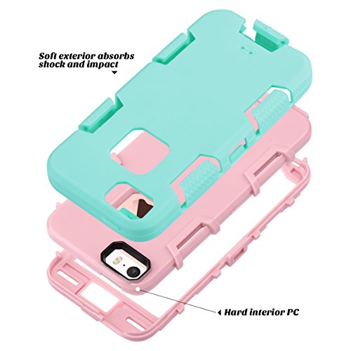 ULAK - Cover iPhone 5S, iPhone SE Custodia Ibrida a Protezione Integrale con Parte Esterna in 3 Strati di Morbido Silicone e Interno Rigido Cover per iPhone SE, iPhone 5/5S - Mint + Oro Rosa