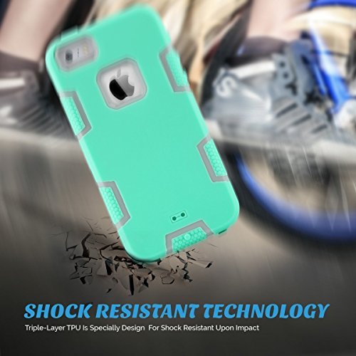 ULAK - Cover iPhone 5S, iPhone SE Custodia Ibrida a Protezione Integrale con Parte Esterna in 3 Strati di Morbido Silicone e Interno Rigido Cover per iPhone SE, iPhone 5/5S - (Grigio + Menta Verde)