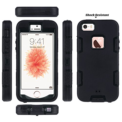ULAK Cover iPhone 5S, iPhone SE Custodia ibrida a protezione integrale con parte esterna in 3 strati di morbido silicone e interno rigido cover per iPhone SE, iPhone 5/5S - (nero + nero)