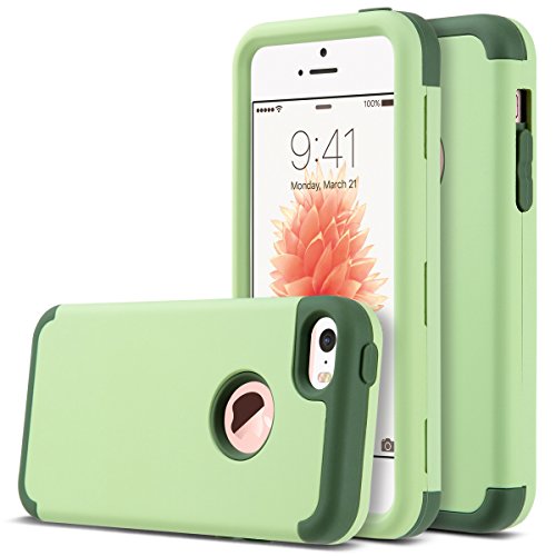 ULAK Cover iPhone 5S, iPhone SE Custodia Ibrida a Protezione Integrale con Parte Esterna in 3 Strati di Morbido Silicone e Interno Rigido Cover per iPhone SE, iPhone 5/5S/5C (Verde)