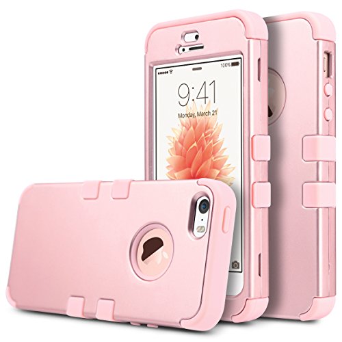 ULAK Cover per iPhone 5S, iPhone SE Custodia ibrida a protezione integrale con parte esterna in 3 strati di morbido silicone e interno rigido Cover per Apple iPhone 5S / 5 / se, Oro Rosa