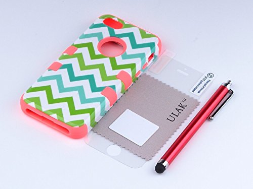 ULAK - Cover iPhone 5C, iPhone 5C Custodia Ibrida a Protezione Integrale con Parte Esterna in 3 Strati di Morbido Silicone e Interno Rigido Cover per iPhone 5C, Verde + Rosa Wave
