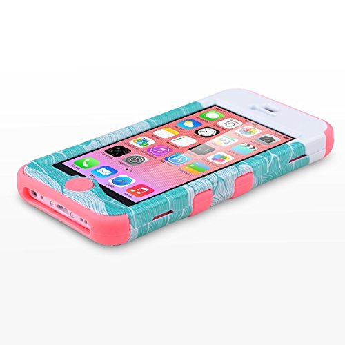 ULAK - Cover iPhone 5C, iPhone 5C Custodia Ibrida a Protezione Integrale con Parte Esterna in 3 Strati di Morbido Silicone e Interno Rigido Cover per iPhone 5C, Rosa + Fiore Blu