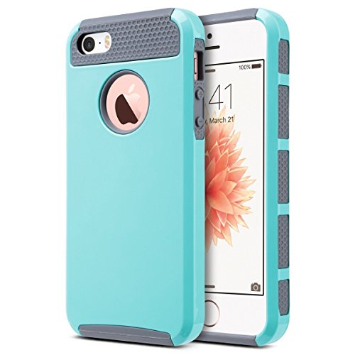 ULAK - Cover per iPhone SE - iPhone SE Custodia, PC + TPU Cover ibrida rigida super protettiva con doppio strato in silicone per iPhone SE / 5, iPhone 5S cover - proteggischermo trasparente, Menta Verde + Grigio