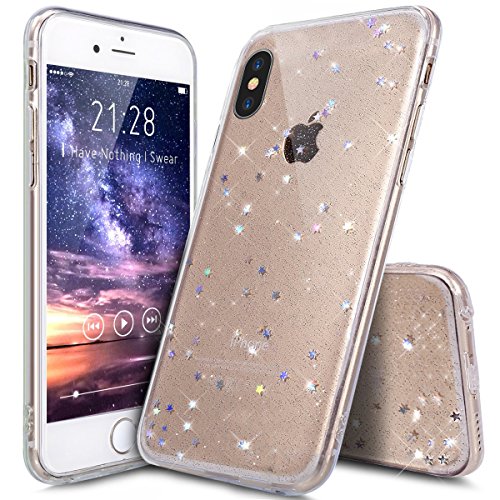 Cover iPhone X,Custodia iPhone X Cover,ikasus Cristallo lusso Bling scintillio lucido diamante scintilla Ultra Sottile Trasparente Morbida TPU Silicone Gel Custodia Case Cover per iPhone X,Cancella