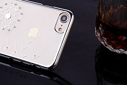 Cover iPhone 8 Custodia,Cover iPhone 7,ikasus Placcatura dente leone Lucido cristallo Custodia Trasparente Morbida TPU Silicone Gel Custodia Case Cover per iPhone 7/8 Custodia,Argento