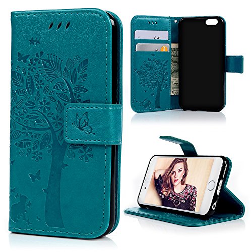 Cover per iPhone 6 Cover Flip, iPhone 6S Custodia Libro Pelle PU e TPU Silicone con Funzione Supporto Chiusura Magnetica Portafoglio Libretto Bumper Case per iPhone 6/6S, Albero Verde
