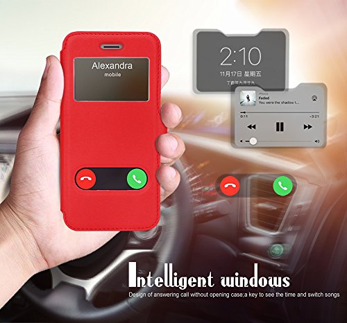FYY Cover per iPhone 6S, custodia per iPhone 6, custodia magnetica Smart View con finestra di apertura per Apple iPhone 6S/6, colore: Rosso
