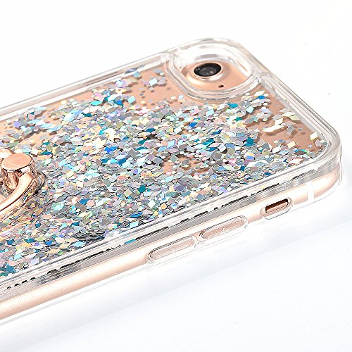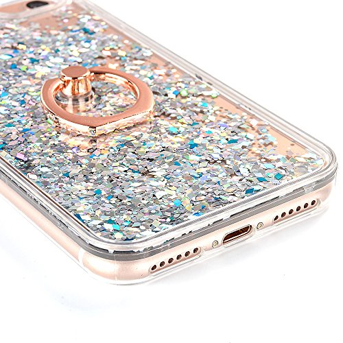 ZCRO Cover per iPhone SE 2016 / iPhone 5S / iPhone 5 Custodia Cover Case Plastica Dura Liquido Glitter Brillantini Trasparente Rigida Cover Silicone Bumper Custodia con Ring Anello Supporto,Argento