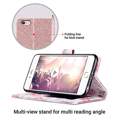 ULAK Cover iPhone 6S Plus, iPhone 6 Plus Custodia, Porta Carte Integrati Portafoglio Flip Case per iPhone 6s Plus/iPhone 6 Plus 5.5 Pollici, con Chiusura Magnetica, Kick Stand, Bling Oro Rosa