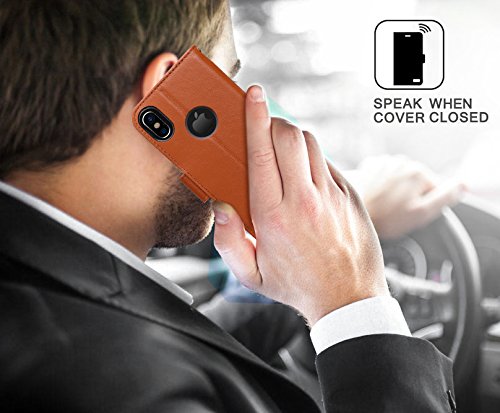FYY Cover iPhone XS, Custodia iPhone X, Flip Custodia Portafoglio Caso Libro Pelle Vera con Funzione Supporto e Slot per Schede per iPhone XS/iPhone X/iPhone 10 5.8" - Marrone Oscuro