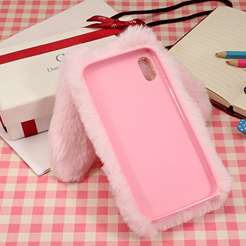 Cover per iPhone X, Custodia per iPhone 10, SevenPanda Rabbit Bunny Fur Ear Coniglio Custodia in Silicone Case 3D Elegante Soffici Hairball Villi Eco-pelliccia Peluche Lana Diamante Bling Strass Carino Clear Trasparente Soft Morbido TPU Bumper Shockproof Back Protector Caso per iPhone X / iPhone 10 5.8" - Grigio Scuro