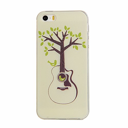 OuDu Cover iPhone 5/5S Custodia TPU Silicone Cassa Gomma Soft Silicone Case Bumper Custodia Morbida Cover Ultra Sottile Leggero Custodia Flessibile Liscio Caso Anti Graffio Anti Scossa Anti Scivolo - Albero Chitarra