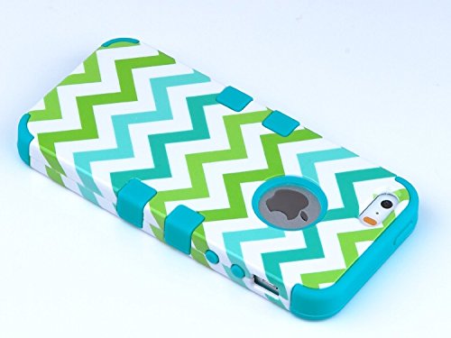 ULAK - Cover iPhone 5S, Custodia iPhone 5S / SE Unique Waves - Cover Ibrida Anti-shock Triplo Strato Protettivo in Silicone Robusto per iPhone 5/5S, iPhone SE - Con proteggischermo e penna (blu + verde)