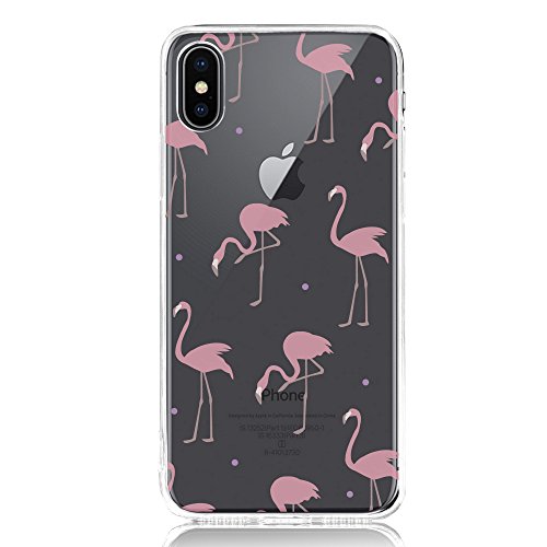 Oveo Cover iPhone X, Dolce Vita Serie Trasparenti Silicone Custodia per Ragazza/Donna, Trasparente con Disegni Fenicottero Rosa Rossa