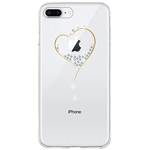 Oveo Cover iPhone 7 Plus / 8 Plus, Dolce Vita Serie Trasparenti Silicone Custodia per Ragazza/Donna, Trasparente con Disegni Cuore Cristallo Brillantini Glitter