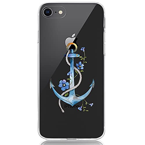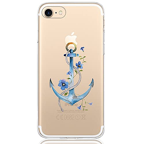 Oveo Cover iPhone 7/8, Dolce Vita Serie Trasparenti Silicone Custodia per Ragazza/Donna, Trasparente con Disegni Fiori Ancora Blu