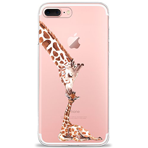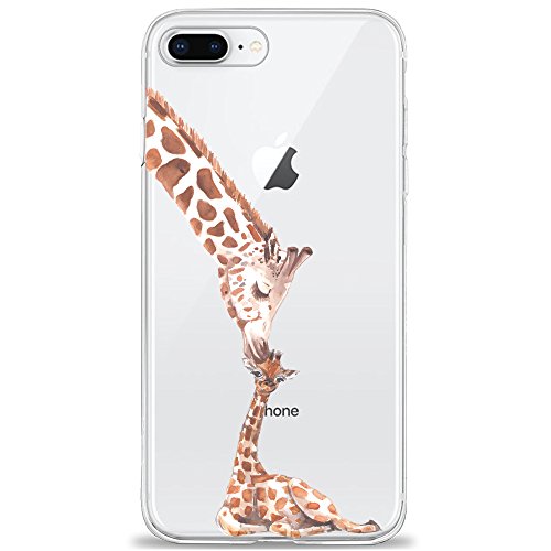 Oveo Cover iPhone 7 Plus / 8 Plus, Dolce Vita Serie Trasparenti Silicone Custodia per Ragazza/Donna, Trasparente con Disegni Giraffa Amore Incondizionato
