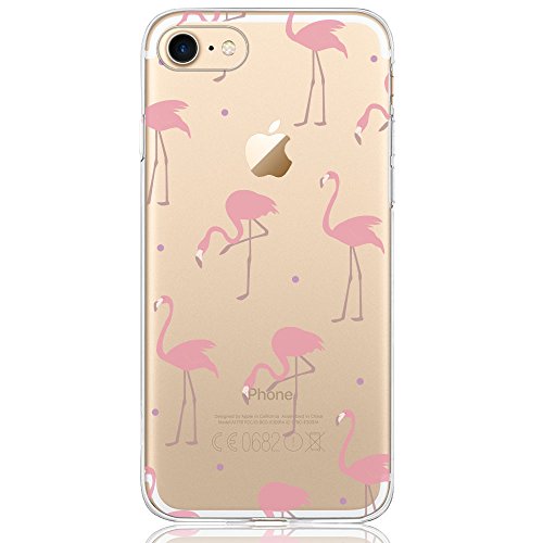 Oveo Cover iPhone 7/8, Dolce Vita Serie trasparenti silicone Custodia per ragazza/donna, trasparente con disegni Fenicottero Rosa Rossa